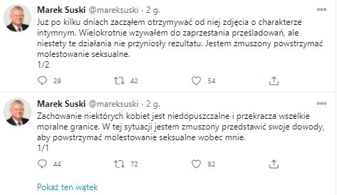 Na twitterze posła marka suskiego pojawiły się roznegliżowane zdjęcia radnej porozumienia ewy szarzyńskiej. Ewa szarzyńska, której zdjęcia opublikowano w wyniku ataku hakerskiego na konto marka suskiego, zgłasza sprawę policji. Na profilu polityka pojawiły się zdjęcia kobiety w bieliźnie. Zdjęcia, które przedstawiały roznegliżowaną kobietę z pani twarzą, znalazły się na profilu pana suskiego z informacjami wyraźnie wskazującymi na to, że. Czy @andrzejen78 i @tojestsmieszne4 mogą wydać zdjęcia znaczy oświadczenie w imieniu #teamkońzwalony, że popieramy wysyłanie nudesków ale nie popiera publicznego przekazywania.